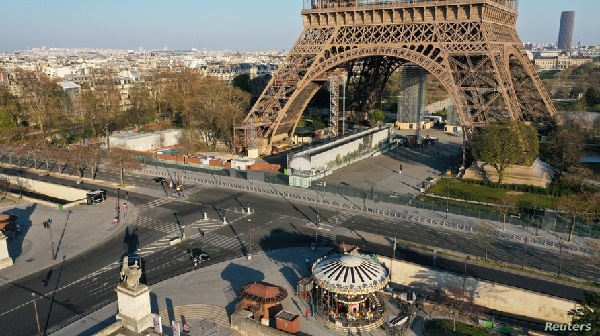 Vista aérea que muestra a la Torre Eiffel desierta en París, Francia, durante el encierro por causa del coronavirus. Foto de Archivo, Abril 2020. Foto: Reuters