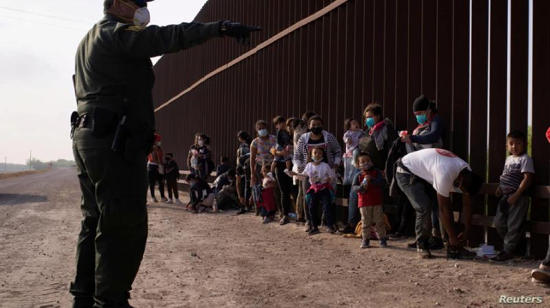 Un agente fronterizo instuye a los inmigrantes después de cruzar el muro desde el Río Grandes hacia EE. UU. en Peñitas, Texas, en marzo de 2017. / Foto: Reuters.