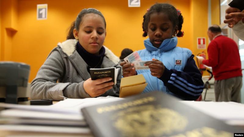 Inmigrantes sostienen su pasaporte en una oficina de inmigración en Granada, España, el 26 de enero de 2010./Foto: Reuters,