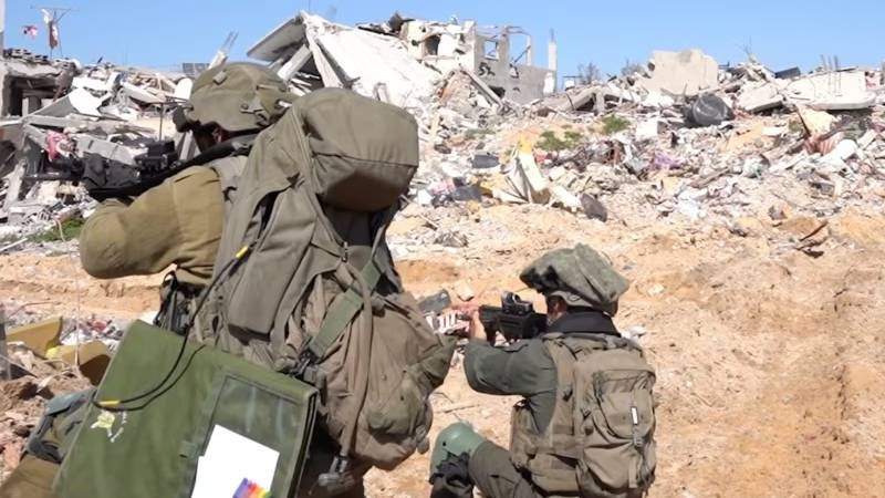Soldados israelíes operan entre las ruinas de edificios en la Franja de Gaza. Captura de video del 26 de febrero de 2024./Foto: Reuters.