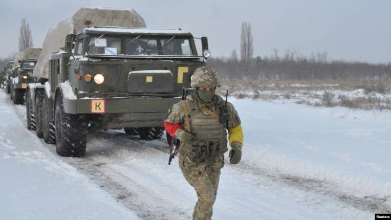 Un miembro del servicio de las Fuerzas Armadas de Ucrania corre cerca de sistemas de lanzacohetes múltiples autopropulsados durante simulacros en la región de Kherson, Ucrania, en esta foto publicada el 1 de febrero de 2022./Foto: Reuters.