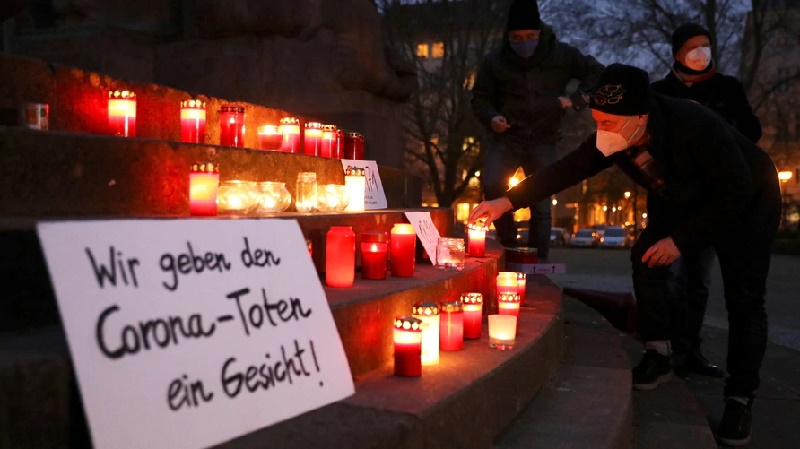 Una persona enciende una vela en una vigilia organizada por el grupo activista #wirgebendenToteneinGesicht (Le damos un rostro a los muertos) en honor a los muertos por COVID-19, en Berlín, Alemania, el 13 de diciembre de 2020. Foto: Reuters