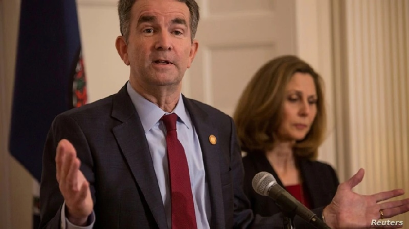 El gobernador de Virginia, Ralph Northam, es acompañado por su esposa, Pamela Northam, durante una rueda de prensa en Richmond, Virginia, el 2 de febrero de 2019. Foto: Reuters