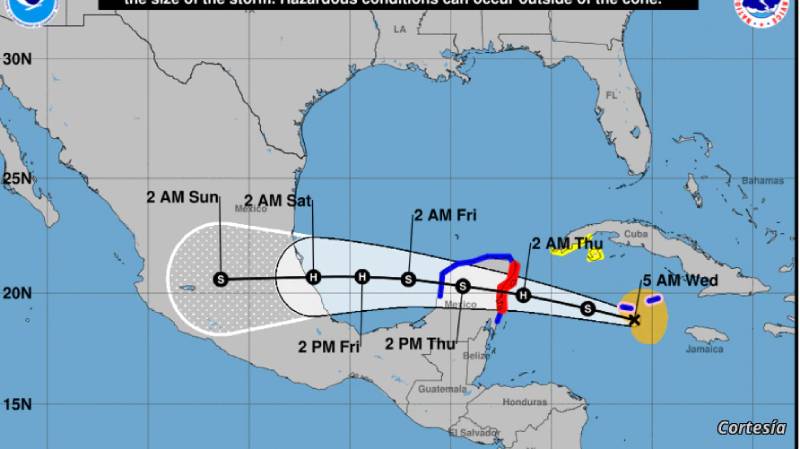 Una alerta de huracán estaba en vigor para la península de Yucatán desde Cancún hasta Punta Herrero, incluyendo el centro turístico de Cozumel.
