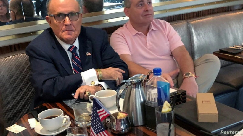 El abogado Rudolph Giuliani (izq.) comparte en un café con el empresario ucraniano Lev Parnas, en el Trump International Hotel in Washington DC, en septiembre de 2019. Foto: Reuters