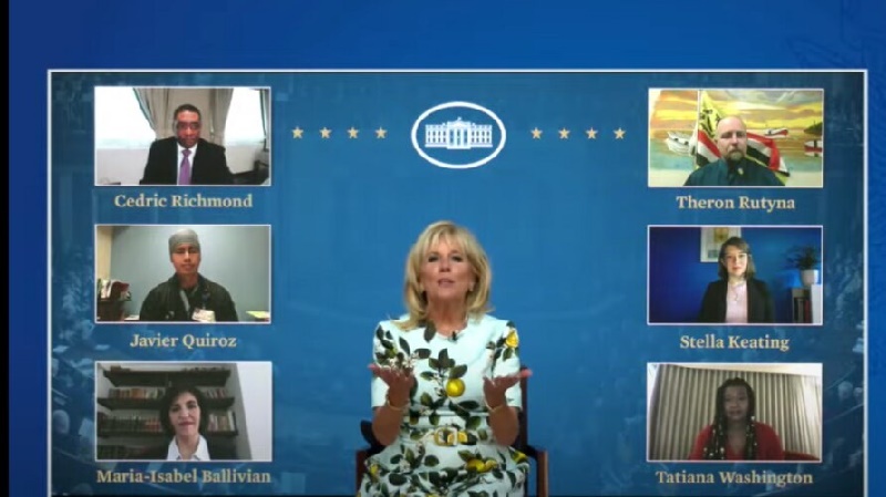 Jill Biden invitó a cinco activistas a una recepción virtual previa al discurso del presidente Biden ante el Congreso. Foto: VOA