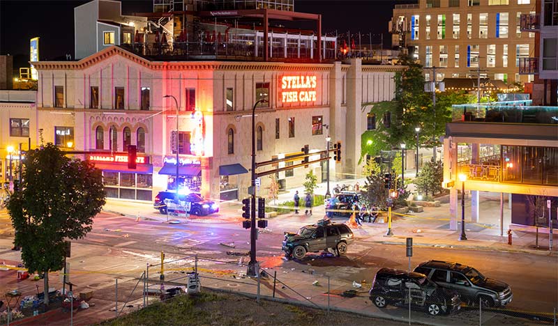 Un automovilista chocó contra un grupo de manifestantes en el en el vecindario Uptown de Minneapolis el domingo por la noche, matando a una mujer e hiriendo a otra.