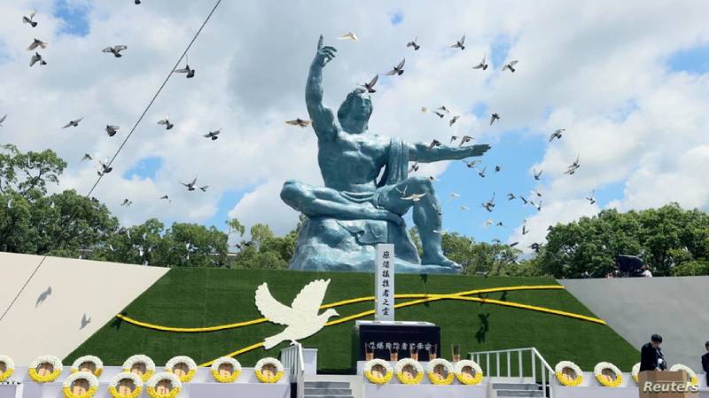 En su discurso en el Parque de la Paz de Nagasaki, el alcalde Tomihisa Taue instó al gobierno de Japón a tomar la iniciativa en la creación de una zona libre de armas nucleares en el noreste de Asia en lugar de permanecer bajo el paraguas nuclear de Estados Unidos, una referencia a la promesa de Estados Unidos de usar sus propias armas nucleares para defender a los aliados sin ellos.