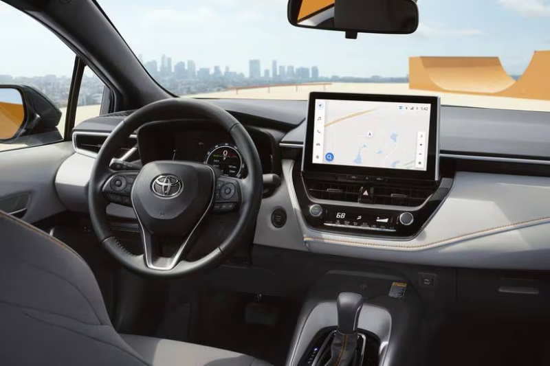 Todos los Corolla también vienen con: Control de crucero adaptado, mitigación de colisión frontal, mitigación de salida de carril y sistema de mantenimiento de carril. Las ayudas avanzadas al conductor del Corolla funcionan bien, aunque me gustaría que el aviso de ángulo muerto ofreciera una advertencia auditiva en lugar de sólo visual. El sistema de asistencia de mantenimiento de carril es particularmente bueno. Centra el auto en el carril sin ser demasiado agresivo.