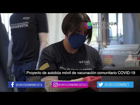 Las unidades móviles de vacunación son una estrategia de distribución de vacunas altamente dirigida, destinada a llevar las vacunas a las personas que de otro modo tendrían dificultades para vacunarse debido a las barreras que incluyen: el transporte, la tecnología y las barreras geográficas. Toda la vacuna contra COVID-19 es gratuita. No se requiere identificación, prueba de ciudadanía ni seguro médico. Cada autobús está preparado para vacunar alrededor de 100 personas cada día. Todas las personas que tengan una cita podrán recibir la vacuna, tenga en cuenta que algunas vacunas se pueden administrar fuera del autobús. Las unidades móviles pueden vacunar a cualquier persona de 18 años o más. Los primeros autobuses se desplegarón el 19 de abril y seguirán funcionando de lunes a jueves durante todo el verano. Regístrese para el conector de vacunas vaccineconnector.mn.gov/en-US/