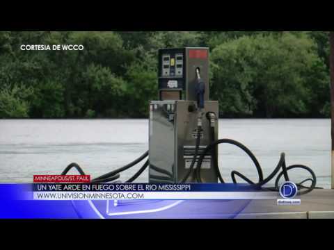 Un yate arde en fuego sobre el rio Mississippi